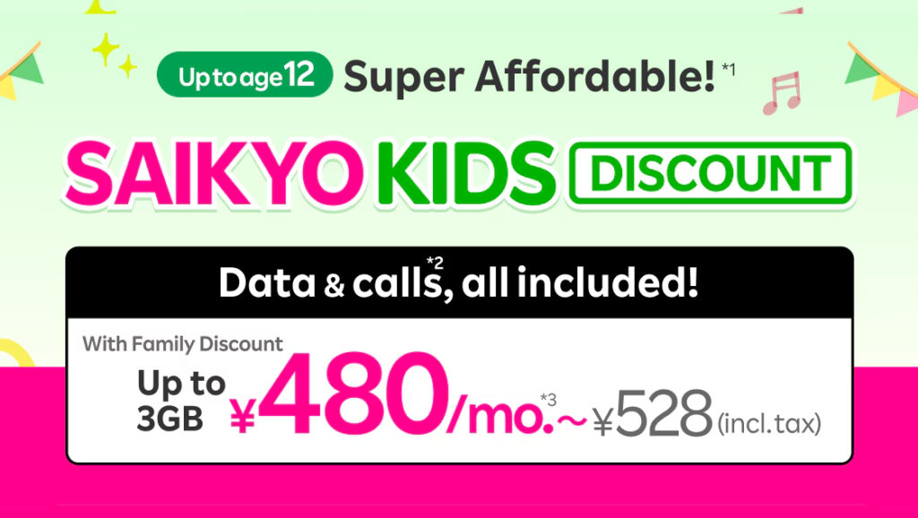 Children aged 12 and under are eligible for the “Strongest Kids Discount,” which significantly reduces smartphone costs for low-capacity (up to 3GB) usage.