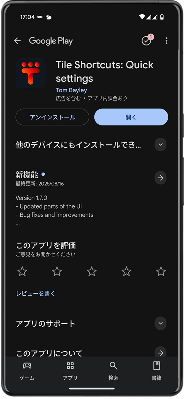 1.「Tile Shortcuts: Quick settings」をGoogl Play ストアからダウンロード