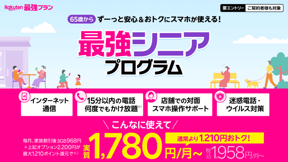 楽天モバイルの「最強シニアプログラム」で、65歳からのスマホライフが安心&おトクに!