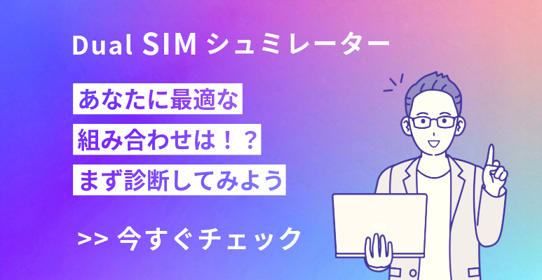 主回線と副回線の最適な組合せ診断 デュアルSIMを上手に活用するために、あなたに最適な組み合わせは? 10個の質問に答えて、あなたにぴったりの主回線と副回線の組み合わせを見つけましょう! 診断結果 あなたに最適な主回線と副回線の組み合わせはこちらです。 もう一度診断する